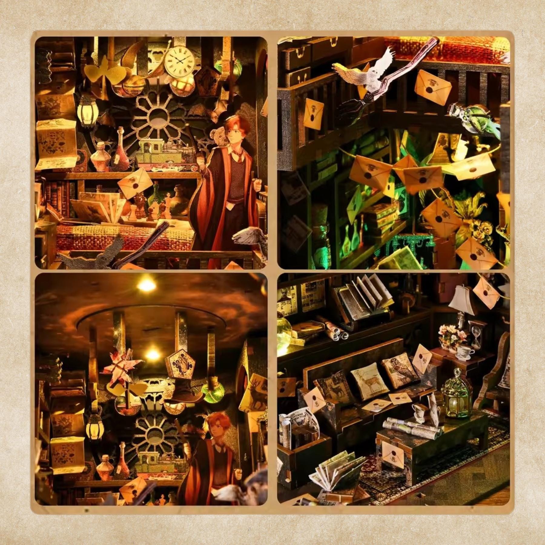 “Whispers from the House of Magic” is a handcrafted miniature book nook that transforms your bookshelf into a gateway to an enchanted realm. Tiny glowing lanterns, mystical furniture, and hidden details invite the imagination to wander beyond the pages.