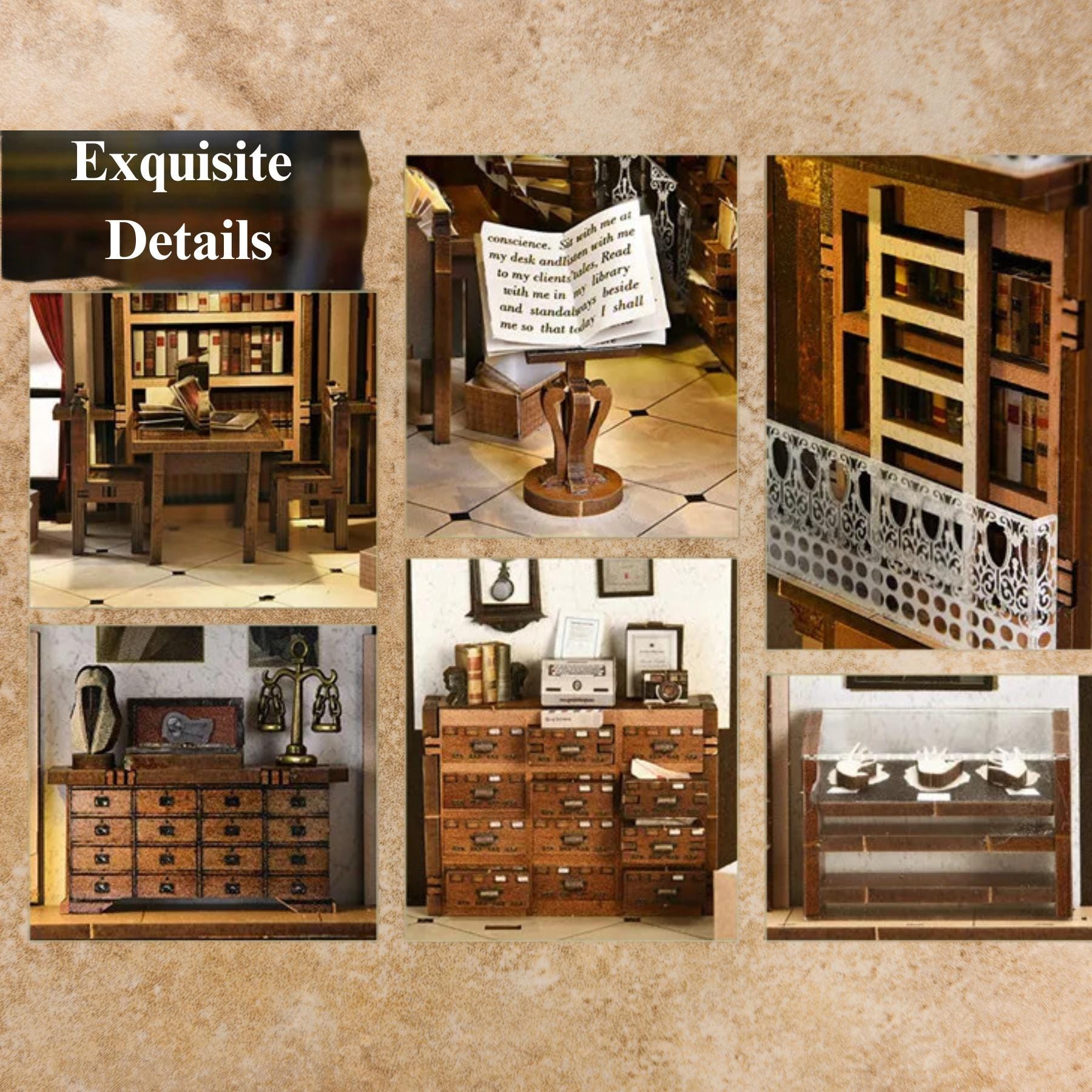 Law Library Book Nook: 3D DIY Wooden Puzzle Miniature