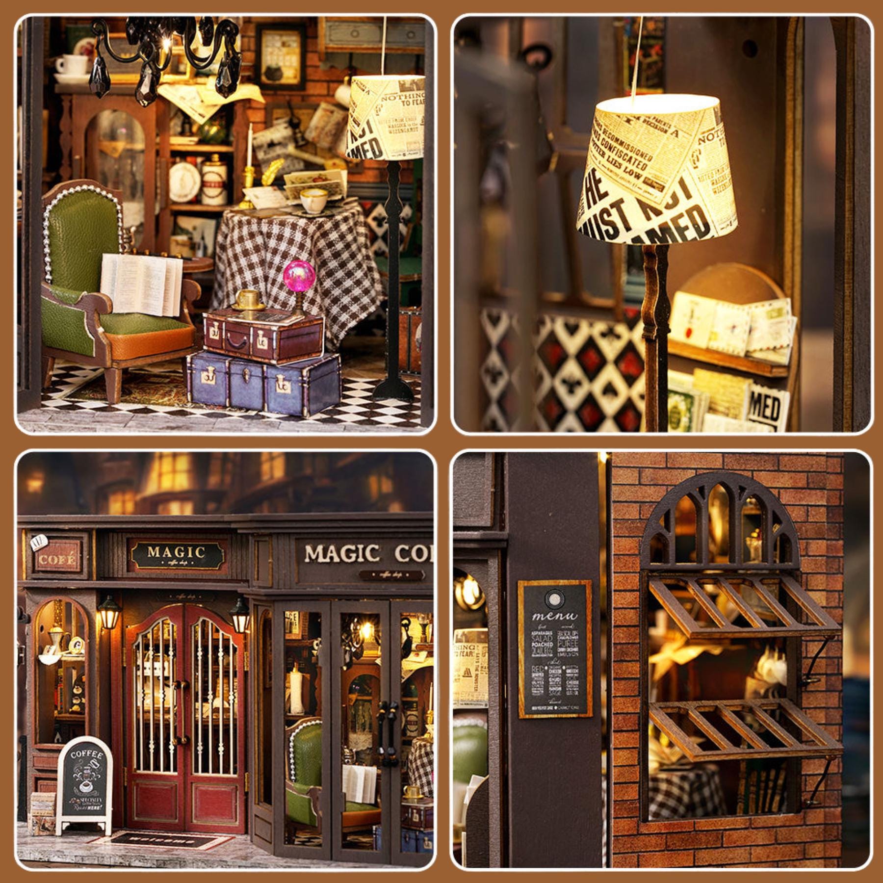 Vintage Coffee Shop Book Nook: 3D DIY Wooden Puzzle Miniature